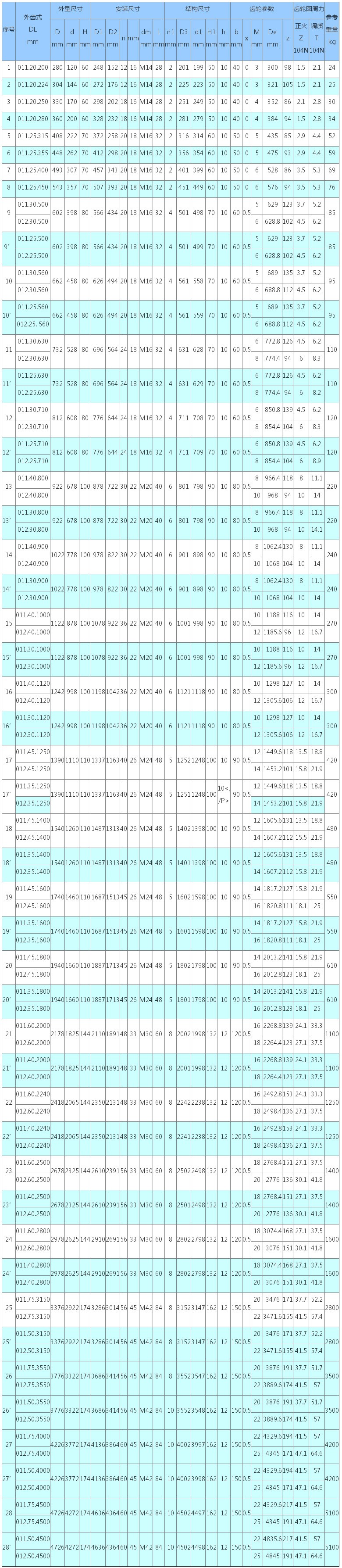 3、表內(nèi)齒輪圓周力為最大圓周力,額定圓周力取其1/2。
