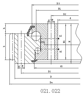 雙排球式回轉(zhuǎn)支承具有三個座圈,鋼球和隔離塊可直接排入上下滾道,根據(jù)受力狀況,安排了上下兩排直徑不同的鋼球。這種開式裝配非常方便,上下圓弧滾道的承載角都為90°,能承受很大的軸向力和傾翻力矩。當(dāng)徑向力大于0.1倍的軸向力時滾道須特殊設(shè)計。雙排球式回轉(zhuǎn)支承的軸向、徑向尺寸都比較大,結(jié)構(gòu)緊固。特別適用于要求中等以上直徑的塔式起重機(jī),汽車起重機(jī)等裝卸機(jī)械上。