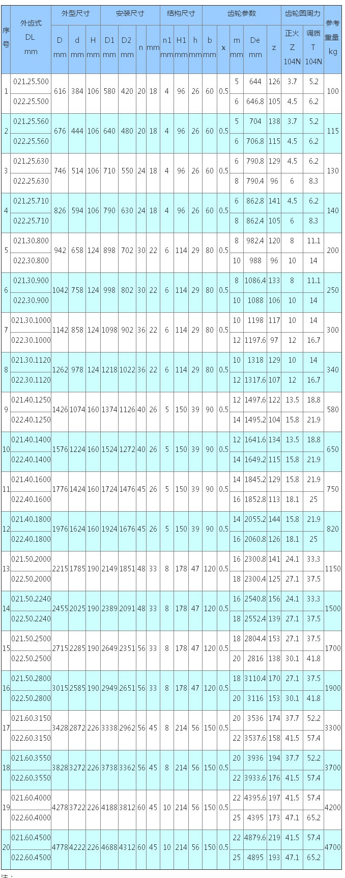 3、表內(nèi)齒輪圓周力為最大圓周力,額定圓周力取其1/2。