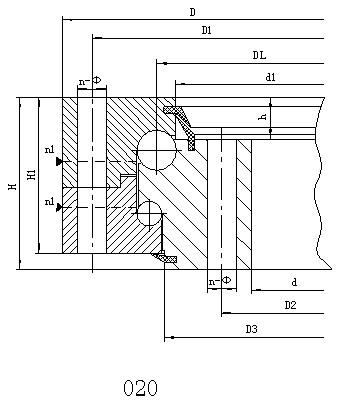 結構特點、性能、適用范圍 雙排球式回轉支承具有三個座圈,鋼球和隔離塊可直接排入上下滾道,根據受力狀況,安排了上下兩排直徑不同的鋼球。這種開式裝配非常方便,上下圓弧滾道的承載角都為90°,能承受很大的軸向力和傾翻力矩。當徑向力大于0.1倍的軸向力時滾道須特殊設計。雙排球式回轉支承的軸向、徑向尺寸都比較大,結構緊固。特別適用于要求中等以上直徑的塔式起重機,汽車起重機等裝卸機械上。