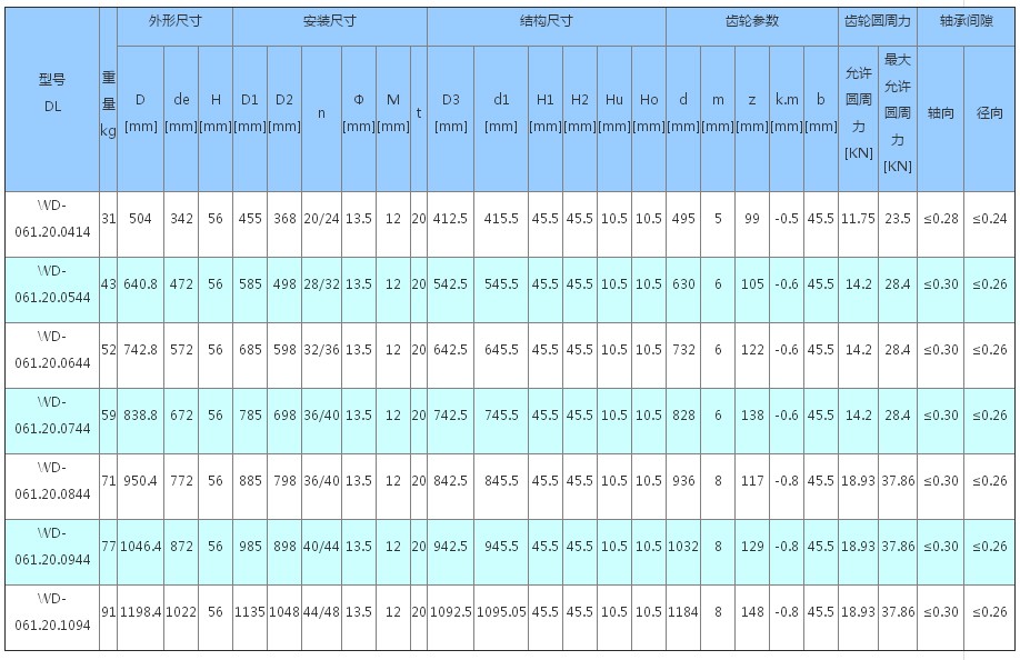 內齒式圖紙列表