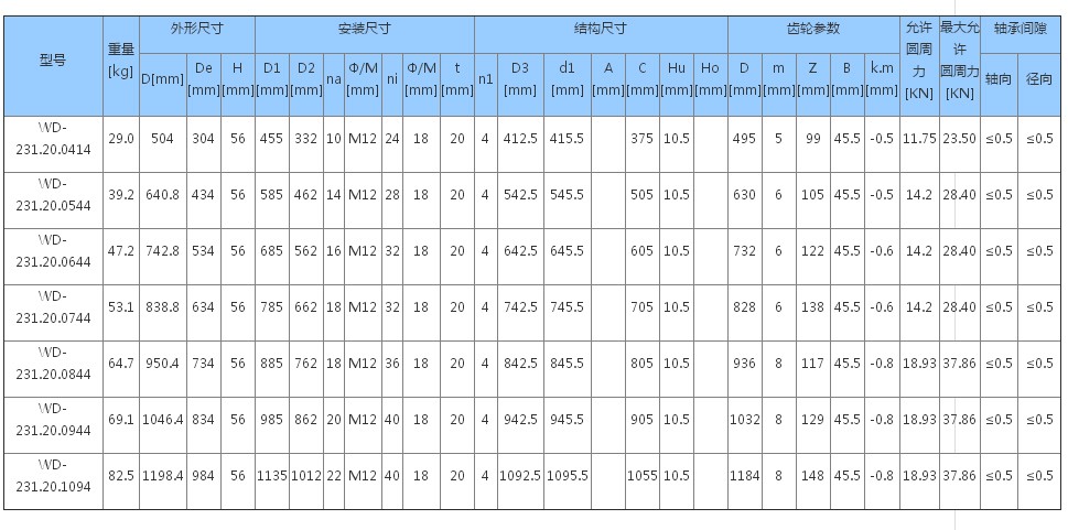 內(nèi)齒式圖紙列表