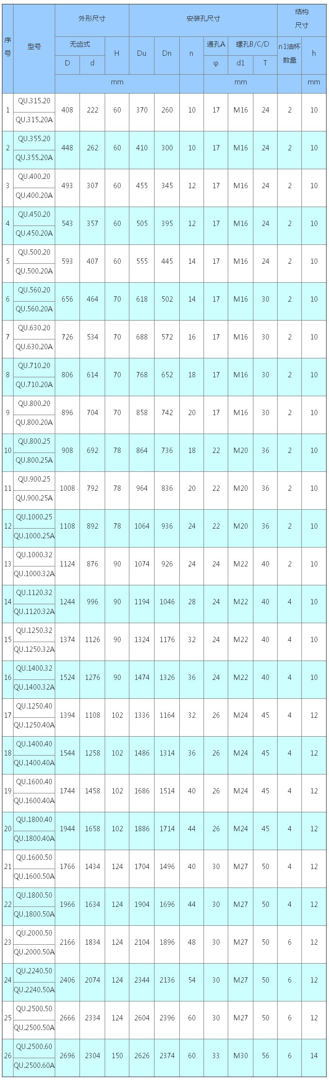 外齒式圖紙列表